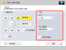 也可以選擇在[註冊頁碼編排/浮水印字元]中註冊的文字。(請參閱「註冊/編輯/刪除頁碼和浮水印的使用者定義文字」)
