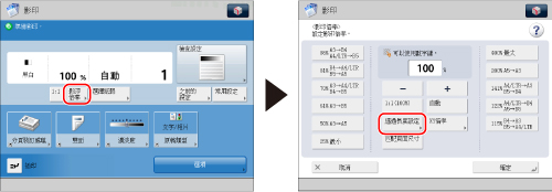 本機器會根據輸入的數值自動計算正確的影印(縮放)倍率。但是,根據紙張尺寸,可能會截去一小部分原稿影像。