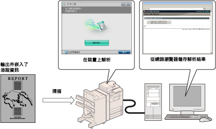 QR代碼包含第一個嵌入的QR代碼和最新嵌入的QR代碼中儲存的資訊。根據QR代碼的特徵,若影印已列印QR代碼的輸出件,並在輸出件中嵌入新QR代碼時,則為「文件掃描鎖定」模式設定的條件將永不會低於前一個文件掃描鎖定資訊所設定的條件。例如,即使最新的掃描鎖定資訊設定為[允許全部],若第一個QR代碼中嵌入的掃描鎖定資訊為[禁止全部],則[禁止全部]將套用於下一個「文件掃描鎖定」模式。