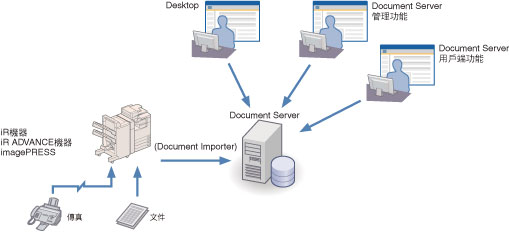 iW Document Server是使用iW Document Server用戶端功能或iW Desktop作為用戶端的文件管理伺服器。