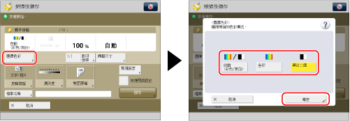 可以透過變更預設掃描設定,將所需的色彩模式註冊為預設設定。(請參閱「指定掃描後儲存設定」)