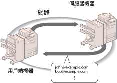 本機器可以作為用戶端機器存取網路上的伺服器機器以其「通訊錄」搜尋/指定接收者。