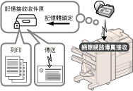 可以設定為使用所需傳送設定自動將符合指定轉寄條件的已接收網際網路傳真文件轉寄至任何接收者。可以將接收的網際網路傳真文件轉寄至其他機器(中繼功能),或將其儲存在「機密傳真收件匣」中。也可以將自動轉寄設定為在指定時間啟用。由於不符合轉寄條件的已接收文件也可以轉寄至任何所需接收者,因此可以用該功能將已接收網際網路傳真文件分類,並傳送給合適的接收者。