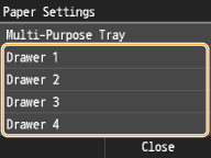<Drawer 2>, <Drawer 3> and <Drawer 4> are displayed only when the optional Cassette Feeding Unit or Cassette Module is installed.