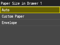 For paper that is not automatically recognized such as LGL or EXEC, specify the paper with <Paper Size List 1 for Recognition> or <Paper Size List 2 for Recognition> beforehand. |