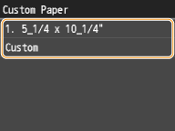 2 | Tap a registered custom paper size. Tap <Custom> to specify a paper size. |