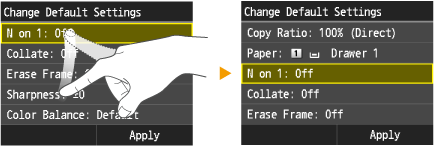 You can change a variety of display-related settings, such as the scrolling speed or display language: Auto Reset Time To change the screen that is automatically displayed when the machine remains idle for a specified length of time: Function After Auto Reset |