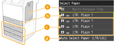 You must first specify the size and type of paper that is loaded in the paper source. Functions may be unavailable for menu options marked with an asterisk (*) depending on the country or region of purchase. |