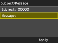 3 | Enter the subject using the numeric keys, and tap <Apply>. Tapping <A/a/12> toggles the input modes. |