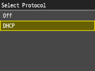 2 | Tap <DHCP>. ![]() ![]() If you do not want to use DHCP to assign an IP address Select <Off>. If you select <DHCP> when this service is unavailable, the machine will waste time and communications resources searching the network for this service. |
