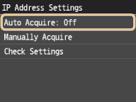 Automatically assigning an IP address1 | Tap <Auto Acquire> <Select Protocol>.![]() |