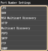 Ports serve as endpoints for communicating with other devices. Typically, conventional port numbers are used for major protocols, but devices that use these port numbers are vulnerable to attacks because these port numbers are well-known. To enhance security, your Network Administrator may change the port numbers. When a port number has been changed, the new number must be shared with the communicating devices, such as computers and servers. Specify the port number settings depending on the network environment.