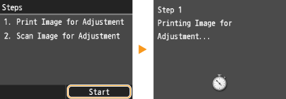 This adjustment improves the result of copies and printing from a USB memory device. For correcting copy images, an adjustment image will be printed and scanned. Note that you cannot perform this adjustment while performing some functions, including, scanning, and printing.