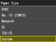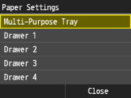 After the default paper setting is registered, the paper setting screen is not displayed when paper is loaded, and the same setting is always used. If you load a different paper size or type without changing the paper settings, the machine may not print properly. To avoid this problem, disable the default setting by selecting <Off> in step 3, and then load the paper.
