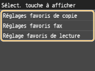 Si vous supprimez un paramètre fréquemment utilisé qui est enregistré pour s'afficher sur l'écran d'accueil pour <Copie>, <Fax> ou <Lecture>, le bouton de l'écran d'accueil sur lequel il est enregistré est également supprimé.