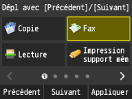 Tapez sur les paramètres fréquemment utilisés dans Copier/Télécopieur/ Numériser.