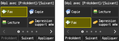 ![]() ![]() Après avoir sélectionné un bouton, un glissement de l'écran ou l'utilisation de