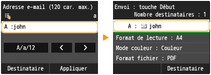 Les paramètres fréquemment utilisés pour <Lecture> ne peuvent être utilisés que pour les e-mails, les dossiers partagés et les serveurs de fichiers. Ajout de boutons depuis <Réglages écr accueil>