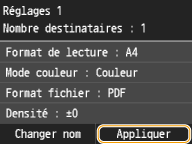 Spécifiez les paramètres et tapez sur <Appliquer>.