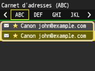 Tapez sur un onglet pour procéder à une recherche selon le premier caractère ou le type pour afficher un destinataire.