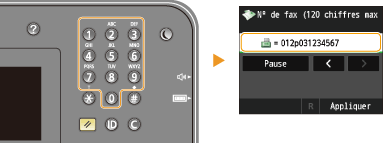 Utilisez les touches numériques qui se trouvent sur le panneau de commande pour désigner les destinataires.
