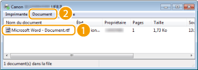 Annulation à partir de l'interface utilisateur distanteVous pouvez annuler l'impression dans la page [Statut tâche] de l'interface utilisateur distante : Vérification de l'état actuel des documents d'impression