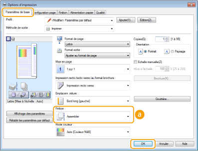 Sélectionnez [Assembler] ou [Grouper] pour [Finition]