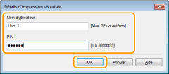 Vérifiez le nom du document, le nom d'utilisateur et le code PIN, puis cliquez sur [OK].
