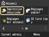 (Précédent) pour fermer l'écran et tapez de nouveau sur <Impression sécurisée>.