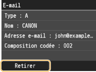 / pour consulter, un à un, les destinataires que vous avez spécifiés. Affichez le destinataire à supprimer et appuyez sur . |