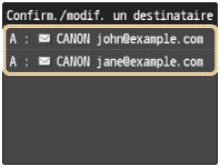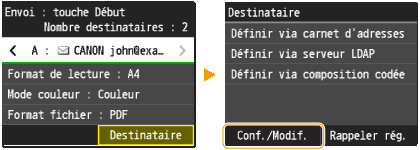 Pour supprimer facilement et simplement les destinataires sans afficher la liste de destinatairesAvant de taper sur <Conf./Modif.> à l'étape 1, vous pouvez taper sur