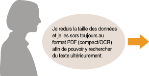 Changez le format de fichier pour <PDF (Compact/OCR)> et enregistrez-le comme réglage par défaut. Désormais, vous pouvez numériser sans avoir à spécifier le moindre paramètre. Modification des réglages par défaut