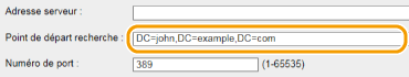 Spécifiez le nœud dans l'arborescence d'informations du répertoire (DIT) à partir duquel vous voulez lancer la recherche. En laissant la zone de texte vide, l'appareil lance automatiquement la recherche à partir de n'importe quel nœud.