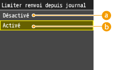 Vous pouvez désactiver les destinataires utilisés précédemment et les réglages des registres de transmission lors de la télécopie ou d'une numérisation et envoi à une adresse e-mail ou vers un dossier partagé ou un serveur de fichiers.