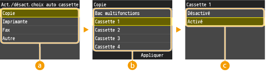 ). La fonction de sélection automatique de cassette à papier est systématiquement activée pour l'impression à partir du plateau multifonctions.