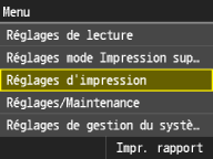 Disponibilité des réglagesTous les réglages de l'imprimante décrits dans cette section, hormis <Ignorer format papier> (Ignorer format papier), ne sont disponibles que pour l'impression PCL. Définir ces réglages ne présente pas d'intérêt, par exemple, si vous imprimez à l'aide d'un pilote d'imprimante UFRII.