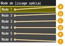 Si <Diffusion d'erreur> est activé pour <Demi-teintes> (Demi-teintes), <Mode 1>, <Mode 2>, <Mode 3> et <Mode 4> ont les mêmes effets sur les impressions que le réglage <Mode 6>.