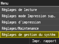 Ce réglage permet de rétablir les valeurs par défaut des réglages de gestion du système. Vous pouvez rétablir simultanément l'ensemble des réglages.