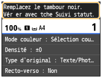 Si "XXXX" s'affiche dans les descriptions ci-dessous, la couleur du tambour concerné (noir, jaune, magenta ou cyan) est indiquée dans le message.