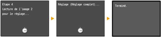 L'image de réglage est numérisée et l'opération de réglage commence. Quelques minutes plus tard, le réglage se termine.