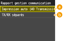 Sélectionnez <Activé> pour imprimer séparément les rapports sur les documents envoyés et reçus ou sélectionnez <Désactivé> si vous préférez imprimer les deux rapports sur la même feuille.