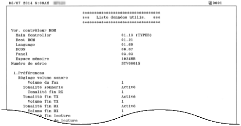 Le réglage <Liste des données utilisateur> ne comporte pas les valeurs actuelles des options <Réglages réseau> et <Réglages de gestion du système>. Pour vérifier toutes les valeurs des réglages, y compris <Réglages réseau> et <Réglages de gestion du système>, choisissez <Liste des données administrateur système>.