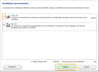 Désélectionnez toutes les cases à cocher, sauf [Manuels] et cliquez sur [Installer].