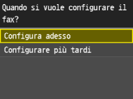 Se si tocca <Configurare più tardi>, la modalità di ricezione è impostata su <Auto>. Successivamente, quando si vogliono configurare le impostazioni fax, mostrare la schermata dell'installazione toccando <Menu>