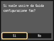 Se in precedenza si è selezionato <Configurare più tardi> sulla schermata di installazione del fax ( Registrazione del numero di fax e del nome dell'unità), toccare <Menu>  <Impostazioni fax>  <Guida configurazione fax> per mostrare la schermata di installazione del fax.