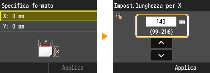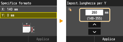 Immettere la lunghezza del lato <Y> quindi toccare <Applica>.