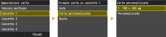 Quando si seleziona il formato per il cassetto della carta