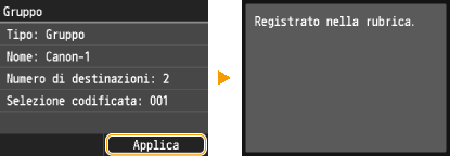 Ripetere i passi 9 e 10 fino a registrare tutte le destinazioni desiderate, quindi premere <Applica>.