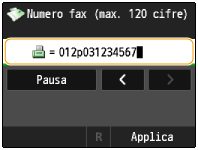 Toccare <Pausa> per inserire una pausa alla fine del numero fax, se necessario.