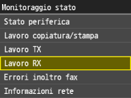 Consente di stampare i rapporti Risultato RX qualora i documenti vengano salvati in memoria. Per stampare i rapporti, toccare <On>. È inoltre necessario impostare <Rapporto risultato RX> su <On>.